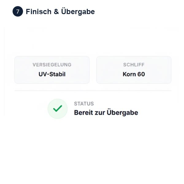 Ihr Weg zum perfekten Deck in 7 planbaren Schritten. Wir übernehmen die harte Arbeit, Sie genießen das Ergebnis. Am Ende muss nicht Schluss sein. Wir übernehmen gern in einem 8. Schritt die dauerhafte Patenschaft über Ihr neues Deck.